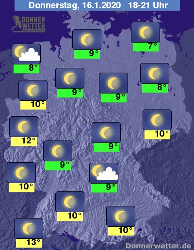 Bis zu den Frühstunden kühlt die Luft auf 1 bis 8 Grad ab, am mildesten bleibt es am Niederrhein und an der Ems. In Thüringen und Bayern kann es leichten Frost geben.