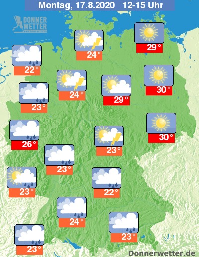 Am insgesamt freundlichsten verlaufen die kommenden Stunden östlich der Elbe - hier bewegen sich bei viel Sonnenschein die Temperaturen mit Werten um 30 Grad heute auch bundesweit an der Spitze.