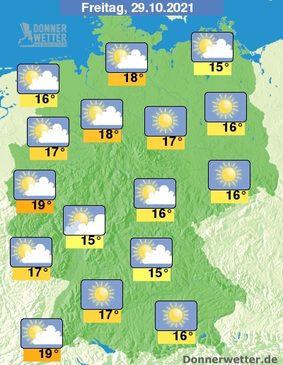 Am Freitag ziehen hier und da einige Wolken durch, zumeist ist es aber heiter bis sonnig, dabei bleibt es trocken. Die Höchstwerte liegen bei 15 Grad in Rostock und bis 19 Grad in Köln.