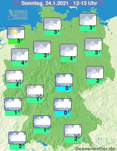 Heute Nachmittag zeigt sich das Wetter verbreitet stark bewölkt oder bedeckt, im Norden und Osten bleibt es dazu meist trocken, sonst fällt allerdings zeitweise Schnee, teils auch teils Schneeregen oder Regen. Die Temperatur steigt auf 0 Grad in Erfurt und bis 5 Grad in Cuxhaven.
