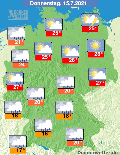In der Nacht zum Donnerstag können sich im Norden weitere, teils kräftige Schauer und Gewitter bilden, oft lockert es aber auch etwas auf. Im Süden bleibt es weitgehend bedeckt und es fällt zeitweise Regen. Im übrigen Land ist es aufgelockert oder stark bewölkt und zumeist trocken. Die Temperatur sinkt auf 18 Grad in Rostock und bis 11 Grad in Jena.