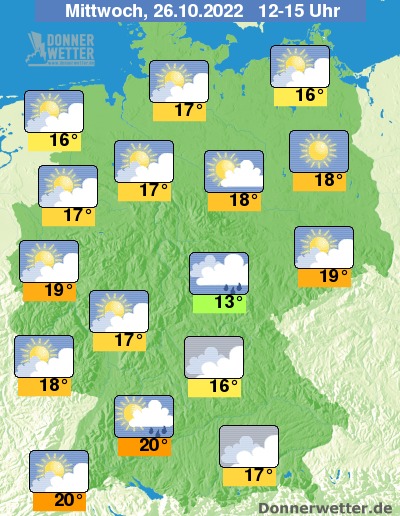 Heute Nachmittag zieht teils starke Bewölkung durch, dazu bilden sich nur ganz vereinzelt auch Schauer, oft ist es aber auch heiter bis aufgelockert bewölkt. Die Temperatur liegt bei 13 Grad in Jena und 20 Grad in Stuttgart.