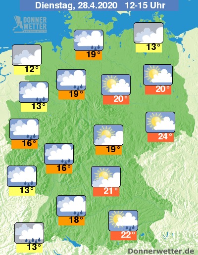 Die Temperaturen bewegen sich zwischen 12 und 17 Grad im Westen, sowie an den Küsten von Nord- und Ostsee. Im übrigen Land werden nochmals angenehme 18 bis 22 Grad, in der Lausitz, sowie am Inn möglicherweise auch bis zu 25 Grad erreicht.
