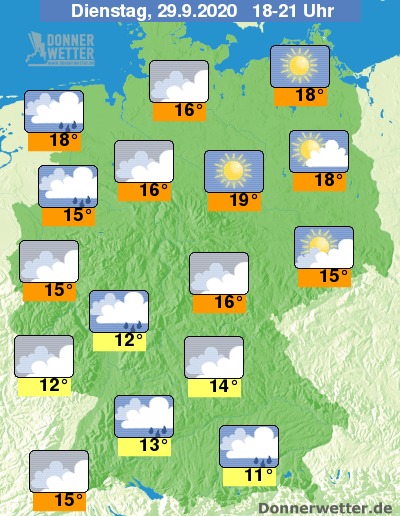 Am Abend kann man nordöstlich der Mittelgebirge häufig den Sonnenuntergang beobachten. Sonst bleibt der Himmel meist von kompakten Wolken überzogen, aus denen es stellenweise noch etwas regnen oder nieseln kann.