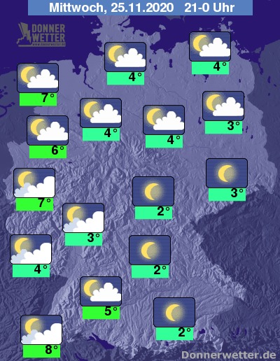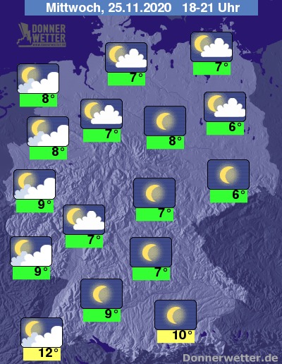 Vor Dämmerungsbeginn liegen die Temperaturen noch zwischen 6 und 12 Grad, bei Dauergrau auch niedriger.