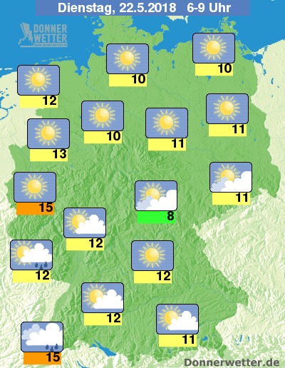 Die Temperaturen erreichen am Morgen Werte um 8 bis 15 Grad C.