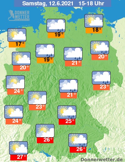 In den Nachmittagstunden zeigt sich der Himmel über dem Norden und Osten der Republik teils wechselnd oder stark bewölkt, teils bedeckt und immer wieder muss mit Schauern gerechnet werden. Auch einzelne Gewitter, die lokal mit Starkregen einhergehen können, sind möglich. Dabei weht ein mäßiger bis frischer, an der Ostsee und im Bergland auch böiger West- / Nordwestwind, der zum Abend hin aber nachlässt.