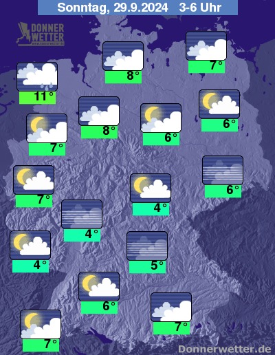 Die Temperaturen gehen in den frühen Morgenstunden zurück auf Werte um 11 Grad an der Nordseeküste und 4 Grad im Hunsrück.