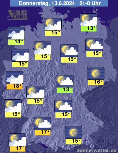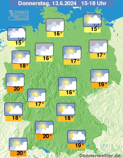 Am Donnerstagnachmittag zeigt sich der Himmel über dem im Norden und am Alpenrand häufig stark bewölkt und es muss zeitweise mit Schauern gerechnet werden, In den übrigen Landesteilen ist es überwiegend heiter bis wolkig oder aufgelockert bewölkt und es bleibt meist trocken.