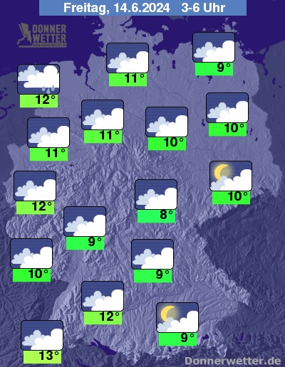 In der Nacht zum Freitag nimmt die Bewölkung von Westen her zu, in den übrigen Landesteilen bleibt es zunächst noch gering bewölkt oder es ist sternenklar. In den Frühstunden ist im Küstenumfeld etwas Regen möglich, sonst bleibt es meist niederschlagsfrei.