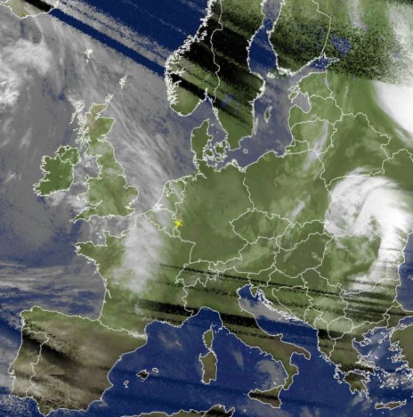 Auf dem Satellitenfoto von heute Morgen sind die dichten Regenwolken eines Tiefs über den Britischen Inseln zu erkennen. Sie erstrecken sich bis weit nach Frankreich hinein und bringen kühles und nasses Wetter mit sich. Über Deutschland zeigte sich der Himmel gleichzeitig verbreitet aufgelockert, oft aber auch stark bewölkt, dabei bliebt es jedoch weitgehend trocken.