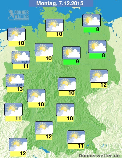 Der Start in die neue Wetterwoche kann sich durchaus sehen lassen. Denn zwischen einigen, teilsweise jedoch auch dichteren Wolken, kann sich doch immer wieder auch die Sonne zeigen, dazu bleibt es überwiegend trocken. Einige Tropfen sind im Westen des Landes jedoch möglich. Die Temperatur steigt auf 8 bis milde 13 Grad.