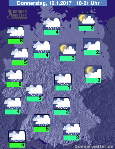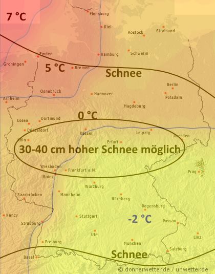 Tief "Egon" hat bis zum Abend weite Teile des Landes erfasst und begräbt diese unter Schnee, auch wenn im Flachland zunächst noch Regen fällt. Die Höchstwerte liegen am frühen Abend zwischen 1 Grad im Thüringer Bergland und 6 Grad an der Nordseeküste.