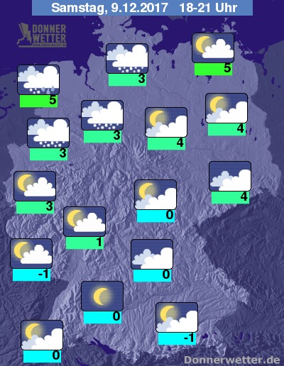 Heute Abend ziehen im Nordwesten kompakte Wolken mit teils kräftigen Regen-, Schneeregen- oder Schneeschauern durch. Es besteht Glättegefahr! Auch sonst ist es teils stark, teils aber auch aufgelockert bewölkt und dazu meist trocken. Im Süden ist der Himmel häufig auch sternenklar. Die Temperatur liegt bei -1 bis 5 Grad.
