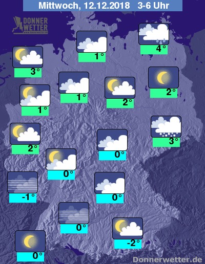 Die Temperaturen erreichen am Morgen Werte um -2 bis 4 Grad C.