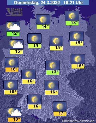 Heute Abend sind im Emsland und am Oberrhein regional ein paar Wolken möglich, sonst ist der Himmel jedoch weitgehend sternenklar. Es bleibt überall trocken bei Werten von 12 Grad in Cuxhaven und bis 18 Grad in Freiburg.