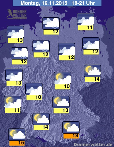 In der ersten Nachthälfte erreichen Schauergebiete dann auch das Rheinland und den Norden Sachsen-Anhalts. Die Temperaturen sinken auf Werte um 12 Grad C in den Regengebieten und um 7 Grad C am Bodensee.