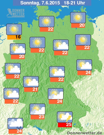 Weitgehend regenfrei kommt man am Sonntag auch durch die späteren Abendstunden; und auch in der ersten Nachthälfte beschränken sich einzelne Schauer auf den äußersten Südwesten und den Alpenrand.