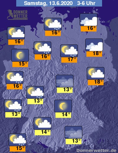 Während der Nacht kann es am Rhein, sowie im Norden zu örtlichen Regengüssen kommen, sonst bleibt es wechselnd bewölkt, teilweise auch klar. Stellenweise können sich Nebelfelder bilden.