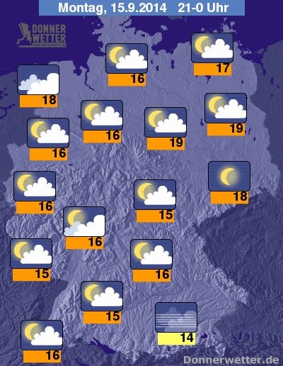 Heute Nachmittag können sich im Norden und Osten bei teils dichten Wolken gebietsweise Schauer und Gewitter entwickeln, sonst bleibt es bei aufgelockerter Bewölkung, vor allem nach Westen hin auch häufig heiterem Himmel, meist trocken. Die Temperatur liegt bei 19 Grad in Ostfriesland und sommerlich warmen 25 Grad in Berlin.