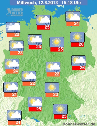 In der feuchtwarmen Luft können sich nachmittags und abends Schauer und Gewitter bilden. Am Donnerstag können die Temperaturen sogar noch weiter ansteigen:
