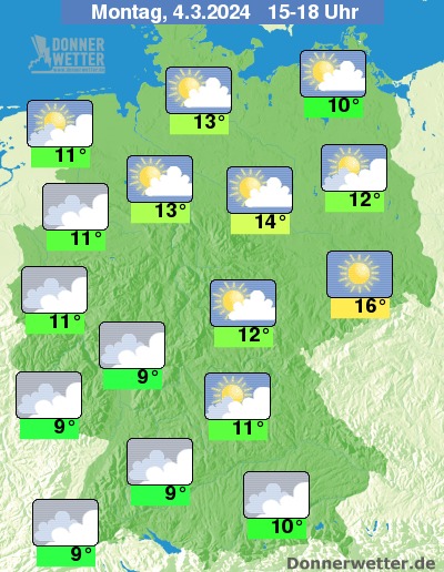Temperaturen am Nachmittag um 9 bis 16 Grad.