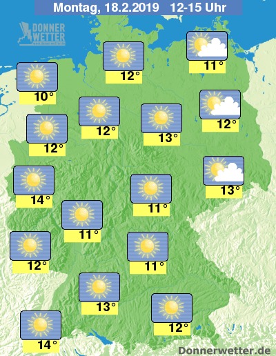 Die Temperaturen erreichen Höchstwerte um 11 Grad C in Ostfriesland und um 15 Grad C in der Kölner Bucht.