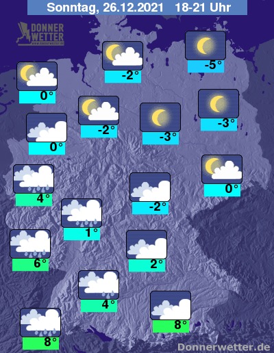 Heute Abend zeigt sich der Himmel über dem Norden und Osten meist sternenklar oder locker bewölkt, hier bleibt es trocken. Über der Südwesthälfte Deutschlands halten sich hingegen dichte Wolken und es fällt vielerorts Regen, der in einem Bereich vom östlichen NRW bis nach Nordbayern auch zum Teil gefrieren kann. Hier herrscht erhebliche Glättegefahr! Die Temperatur liegt bei -5 Grad an der Müritz und etwa 8 Grad am Oberrhein.