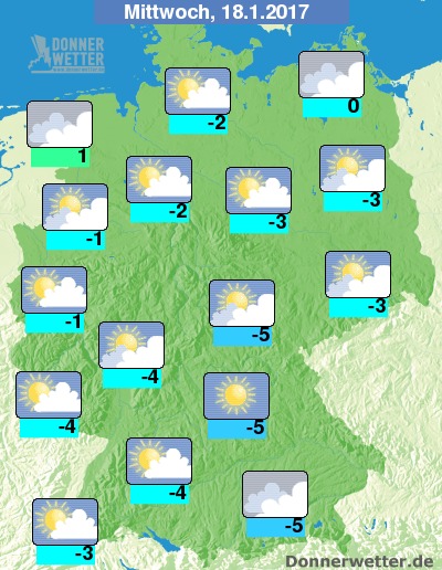 Höchstwerte am Mittwoch um -5 bis +1 Grad C.