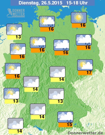 Heute Nachmittag kann sich hier und da die Sonne zeigen, es ziehen aber auch immer wieder dichte Wolken durch, wobei sich einzelne Schauer, jedoch nur selten auch einzelne Gewitter entwickeln können. Die Temperatur liegt bei kühlen 13 Grad in Mittelfranken und bis 17 Grad entlang der Neiße.