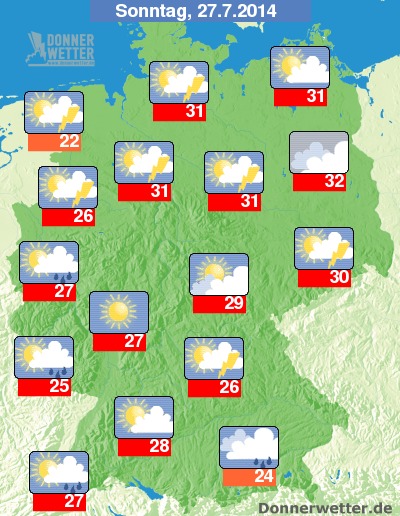 Für den heutigen Sonntag steht zunächst meist viel Sonnenschein auf dem Programm. Dabei ziehen jedoch meist schon von Beginn an erste Quellwolken durch und mit zunehmender Tageslänge nimmt das Schauer- und Gewitterrisiko langsam aber stetig zu. Die Tageshöchstwerte klettern auf angenehme 22 Grad an der Nordseeküste und auf schweißtreibende 32 Grad in der Berlin.