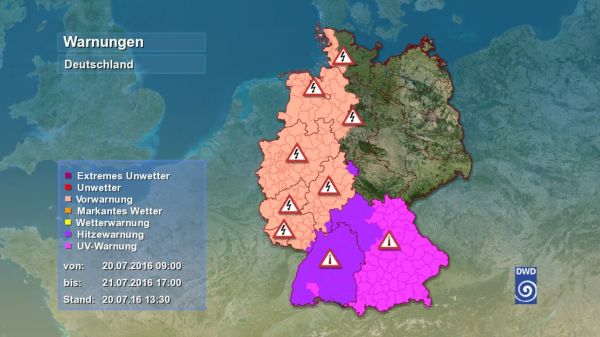Entsprechende Vorabwarnungen des Deutschen Wetterdienstes bestehen. Hier informieren wir Sie jederzeit über die aktuelle Warnlage!