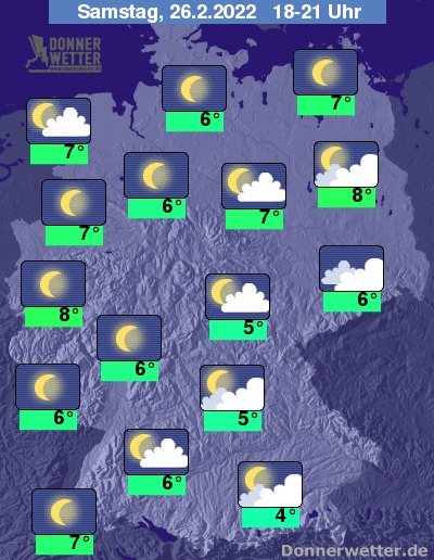 In der Nacht zum Sonntag sind von der Ostsee bis ins südliche Brandenburg hier und da einige Wolken möglich, sonst zeigt sich der Himmel über dem Bundesgebiet aber verbreitet sternenklar, dazu bleibt es trocken. Die Temperatur sinkt auf 3 Grad in Berlin und bis -3 Grad in Jena.