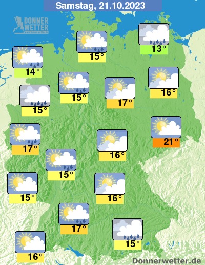 Am Samstag kann sich die Sonne wieder häufiger zeigen. Es ziehen aber auch gebietsweise dichte Wolken durch und dabei fällt auch möglicher Regen. Die Temperatur steigt auf 13 Grad in Rostock und bis 21 Grad in Dresden.