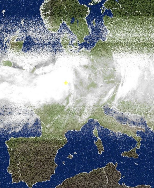 breites Wolkenband über Mitteleuropa