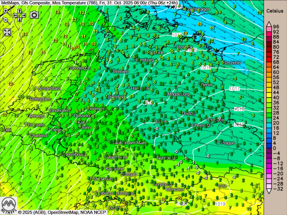 Am Freitag zeigt sich der Himmel im Südosten nach Nebelauflösung heiter oder sonnig. Sonst überwiegt am Freitag wechselnde Bewölkung, im Tagesverlauf nimmt die Bewölkung dann von Nordwesten her zu. Es bleibt aber weitgehend trocken.