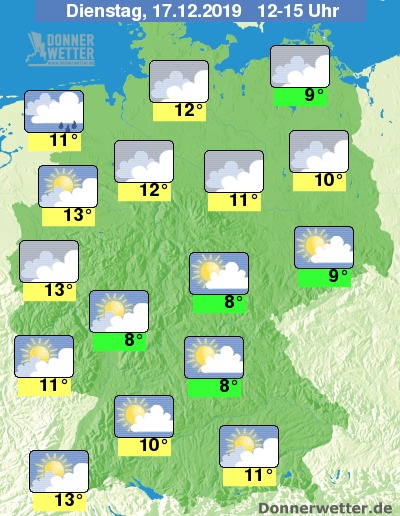Die Temperaturen bewegen sich zwischen 8 und 13 Grad. Im Markgräflerland, sowie im Alpenvorland könnte es föhnbedingt sogar noch etwas milder werden.