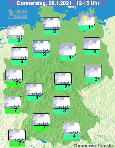 Am frühen Nachmittag fällt verbreitet Regen, im Süden und Südwesten zum Teil auch kräftig. Im Nordwesten und in den nördlichen Mittelgebirgen können sich Schneeflocken unter die Tropfen mischen. Im Nordosten bleibt es überwiegend trocken und an der mecklenburgischen Ostseeküste lässt sich gelegentlich sogar die Sonne blicken.
