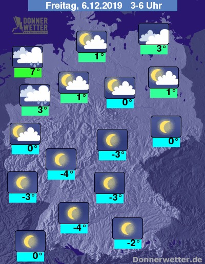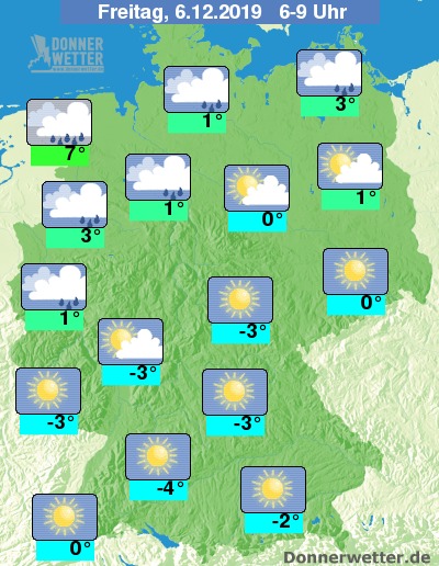 Die Temperaturen erreichen um -4 Grad auf der Schwäbischen Alb und um 7 Grad in Ostfriesland.