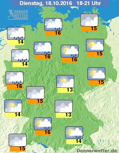 Heute Abend zieht von Nordwesten her ein breiten Regenband in den Westen, Nordwesten und Norden Deutschlands, aber auch sonst ist es mehrheitlich stark, teilweise auch aufgelockert bewölkt, dabei sind einzelne Schauer möglich. Die Temperatur liegt bei 13 bis 16 Grad.