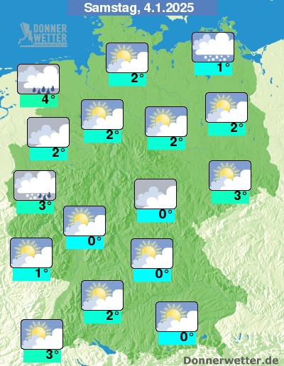Heute zieht überwiegend starke Bewölkung durch, hier und da ist es aber auch aufgelockert bewölkt. Im Norden bilden sich gebietsweise Schneeschauer, während es im übrigen Land weitgehend trocken bleibt. Die Temperatur steigt auf 0 Grad in München und bis 4 Grad in Wilhelmshaven.
