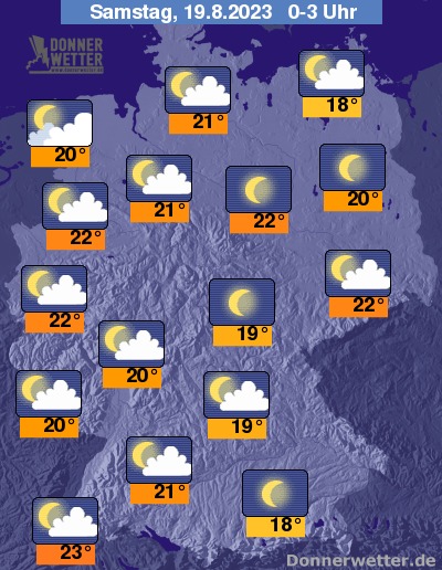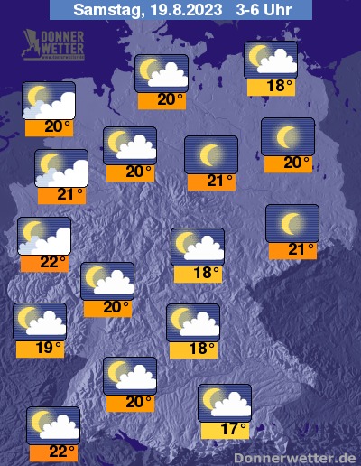 Die Temperaturen erreichen in den Morgenstunden Werte um 19 Grad im Saarland und 24 Grad in der Lausitz.