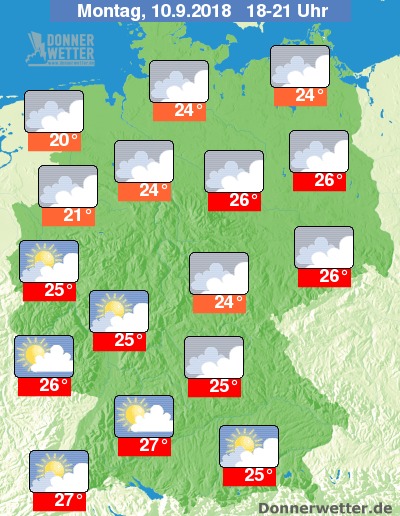Die Temperaturen liegen am Abend bei angenehmen 20 Grad C in Emden und um 27 Grad C im Breisgau.