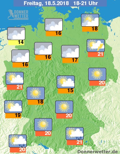 Trotz meist strahlendem Sonnenscheins ziehen am Nachmittag und Abend dann jedoch vor allem entlang der südlichen Mittelgebirge vereinzelt auch Schauer auf, in der Osthälfte sind lokal auch kurze Gewitter möglich.