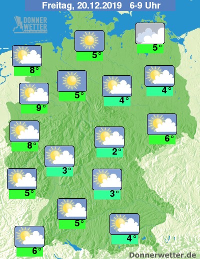 In der Nacht zeigt sich der Himmel über weiten Teilen des Landes locker oder aufgelockert bewölkt, an der Weser kann es gebietsweise auch aufklaren. Es bleibt trocken. Es weht ein meist schwacher Wind aus Ost/Südost; in der Lausitz, im Zittauer Gebirge sowie am Alpenrand sind auch frische bis stürmische Böen möglich.