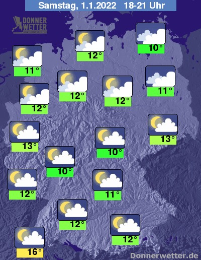 Am Sonntag ist es verbreitet stark oder dicht bewölkt, mögliche Auflockerungen können sich vor allem im Westen und Südwesten zeigen. Über der Nordhälfte fällt gebietsweise Regen, während es sonst trocken bleibt. Die Höchstwerte liegen bei 9 Grad in Mittelfranken und bis 14 Grad im Breisgau. Es weht im Norden ein stürmischer Wind, an der See herrscht verbreitet Sturm.