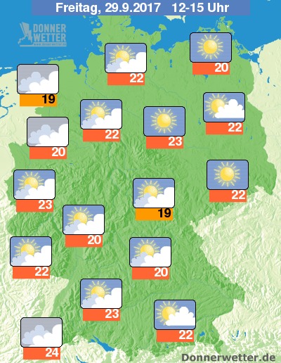 Dazu wird es im ganzen Land noch einmal angenehm mild. Nur auf Rügen bleibt es mit Höchstwerten um die 17 Grad noch recht frisch, sonst reicht es fast landesweit für 20 Grad und mehr. Entlang des Oberrheins sind sogar noch einmal bis zu 25 Grad möglich.