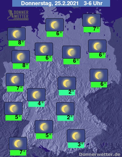 In der Nacht zum Donnerstag ist es bundesweit sternenklar und dazu trocken. Die Temperatur sinkt auf 8 Grad an der Ems und bis etwa 2 Grad in Mittelfranken.
