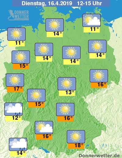 Die Temperaturen bewegen sich zwischen 11 Grad an den Küsten von Nord- und Ostsee, sowie 18 Grad im Süden.