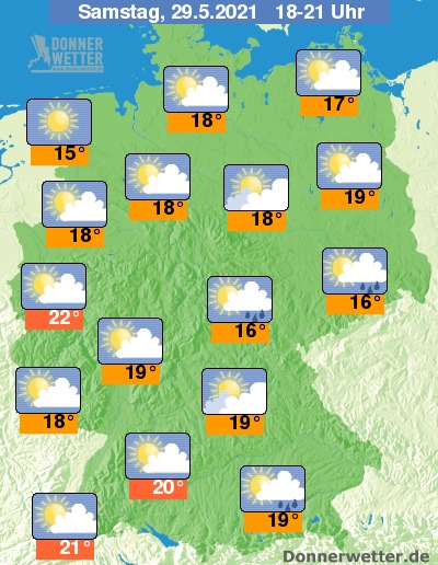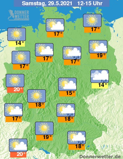 Heute Nachmittag zeigt sich das Wetter verbreitet heiter, oft sogar sonnig, hier und da und besonders im Osten des Landes ziehen allerdings auch mehr und zum Teil dichte Wolken durch, dazu bilden sich hier vereinzelte Schauer. Im übrigen Land bleibt es hingegen weitgehend trocken. Die Temperatur liegt bei 14 Grad an der Nordsee und bis zu 20 Grad im Rheinland.